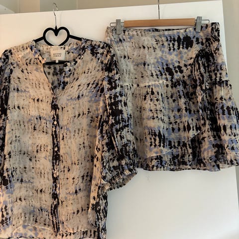 Lekkert sett som kan brukes sammen eller hver for seg. Skjørtet har lommer i sidene.