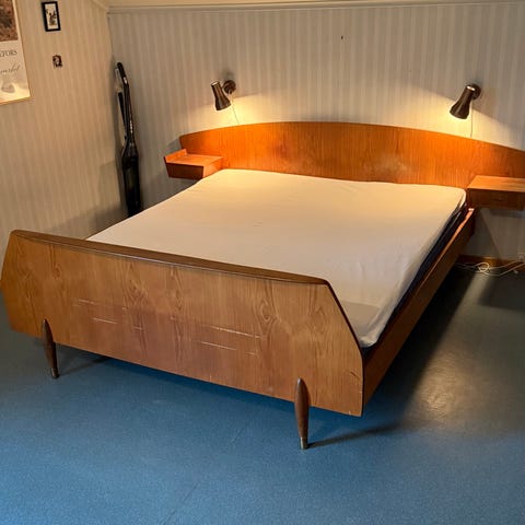 Retro teak dobbeltseng med klassisk design og flotte detaljer