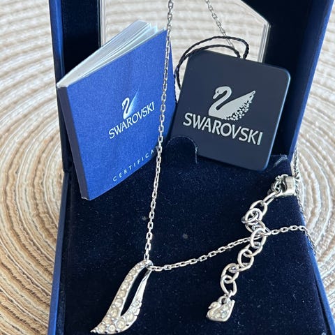 Har Swarovski-kjennetegnet gravert. Innvendig mål: bredde 6 cm, tykkelse 0,8 cm.