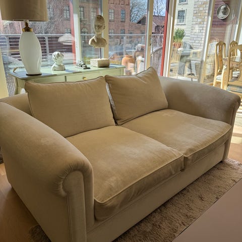 Toseter sofa selges. God å sitte i. Pent brukt, kun en løs tråd bak på sofaen. Synes ikke og kan sikkert klippes av.
