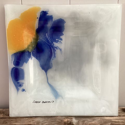 Lekkert farget kunstglass signert Aurora Borealis. Diameter oppe ca. 8,5, høyde ca 22,5 cm.