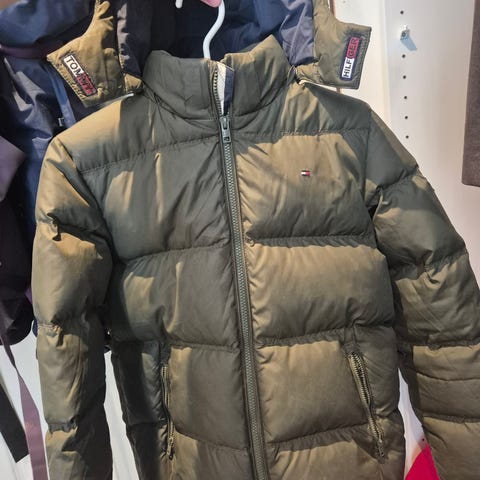 Jakke i dun Hollister yttertøy i størrelse XS for barn 8-10 år.