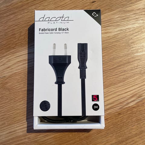 Søkeord: dacota, strømledning, C7 kabel, europlug, apparatkabel, tv-kabel, strømledning elektronikk, svart stoffledning, dacota platinum
