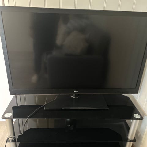 Samsung TV med fjernkontroll. TV-en har en svart ramme og flere tilkoblingsmuligheter inkludert HDMI og USB-porter. Passer for bruk i stue eller kontor. Funker som den skal 😊