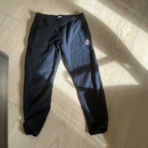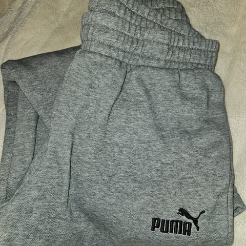 Champion joggebukser i størrelse M og grå farge. Laget med elastisk midjebånd med snøring og ribbede mansjetter ved anklene. Har glidelåslomme bak for oppbevaring. Passer for menn.