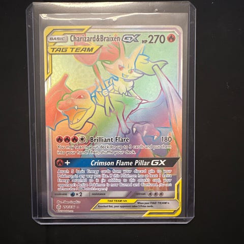 Pokémon GX Sammelkortpakke som inkluderer kort med Charizard, Venusaur, Rayquaza og andre karakterer. Kortene har forskjellige holografiske og spesielle design. Egnet for samlere og spillere av Pokémon-kortspill. Jeg har vmax, v, trainers gx ex og vstar kort