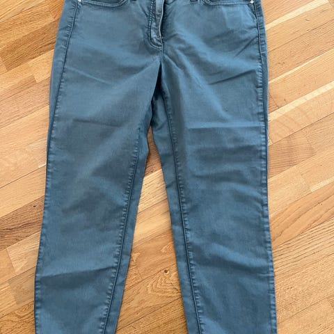 Pene detaljer med glidelås nederst på bena (smale ben nederst). Fint snitt og lommer foran og bak. Fresh farge.