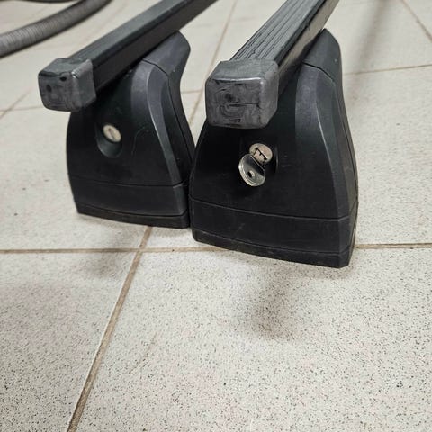 Har stått på VW Golf stv., men passer mange modeller med rails. Avstand fra senter til senter 97-105 cm.