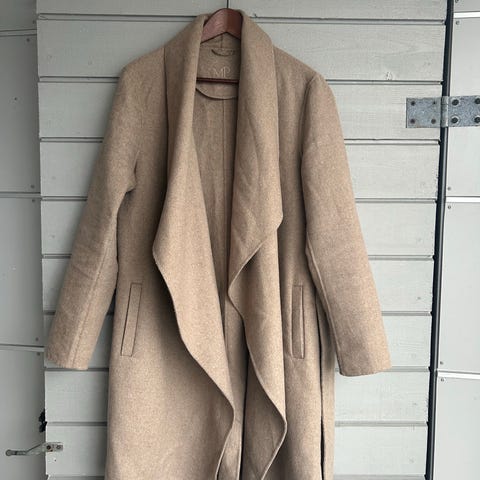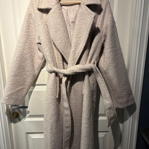 Helt fantastisk kåpe i en grågrønn tone, med en front som er unik og ligger flott rundt halsen. Kåpen er i merket Kiomi tall, rekker til ca knelende (på 1,65 høyde) og har noen små tegn til bruk. Ellers er kåpen god og varm - perfekt til snøen kommer.