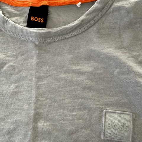 Hugo Boss T-skjorte i størrelse XXL for menn. T-skjorten er brun og har rund hals. Modellen har BOSS-logo på brystet.