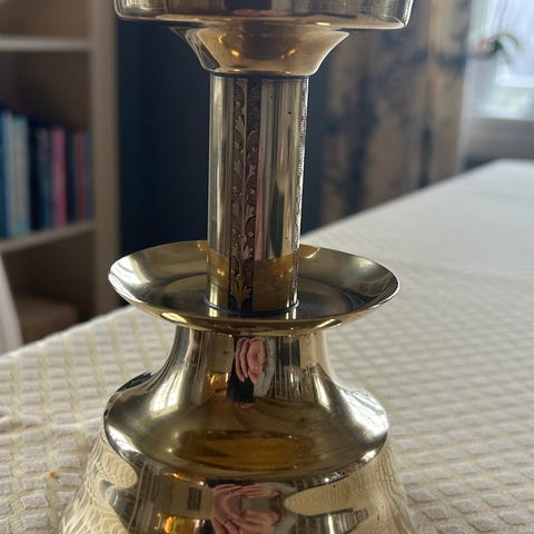 Messing lysestake 40 cm og 49 cm til kubbelys.. selges kr 450 for begge eller kr 250 pr stykk.