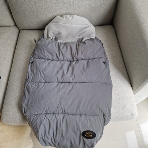 Nydelige grønn Buddy & Hope-sovepose. Har åpninger for sele i bilsete eller barnevogn. Liten rift i en av åpningene (se bilde, teipet for øyeblikket og fungerer