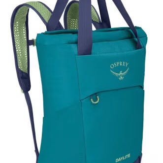 Lett og komfortabel Osprey Jet 12 tursekk i frisk turkis farge med limegrønne detaljer. Sekken er designet for barn og ungdom.
