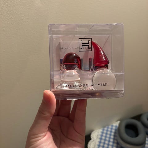 Denne er aldri brukt.Jeg tok den ut av esken for å ta bilde og pakket den ikke helt ut fra plasten rundt.Nissekona kan hentes hos meg i Oslo eller jeg kan sende den og kjøper betaler frakt.