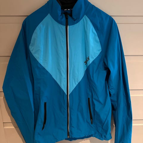 Lett jakke med vindtett og vannavvisende stoff foran.