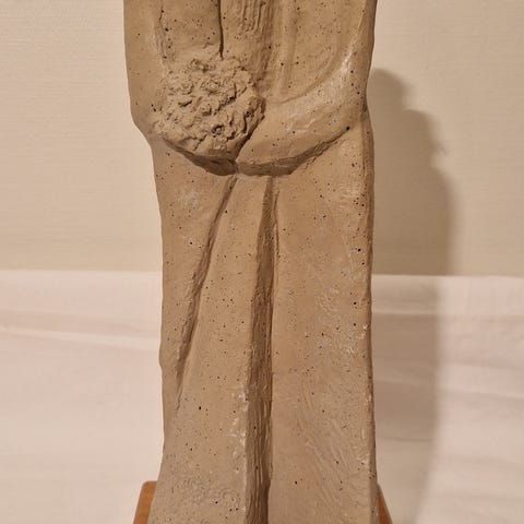 Håndskårne figurer i vestafrikansk tradisjon med tydelige vodun-elementer og dobbel ansiktform. Ca. 50 cm høye.