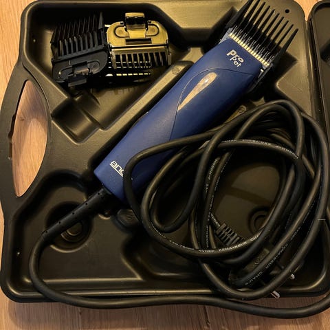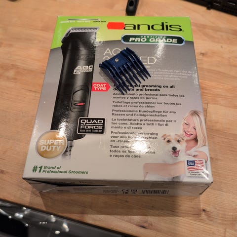 AGC 2-Speed Brushless hår/pels trimmer med 15mm distansekam for å klippe hund. Kjøpt på Buddy i 2024.