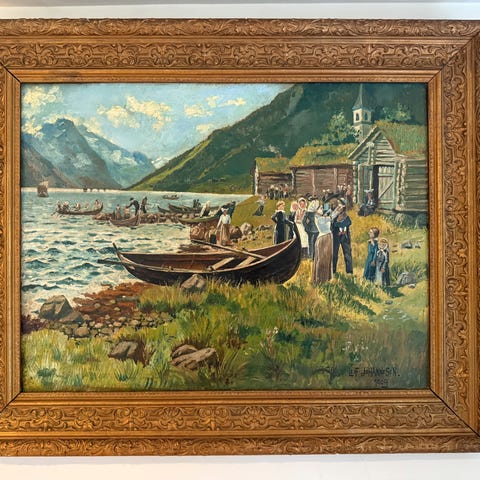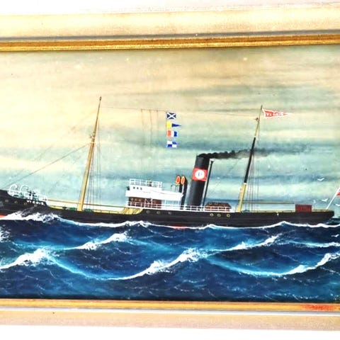 Nydelig maleri av skip fra Bergen. Ca 120 år gml