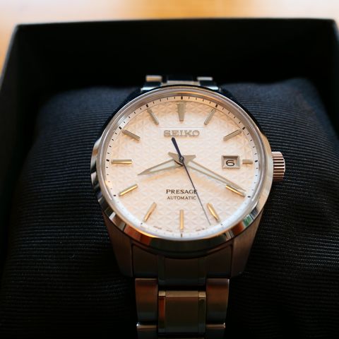 Den er tatt godt vare på, brukt skjeldent og forsiktig. Flott herre ur for fest og formelt bruk.