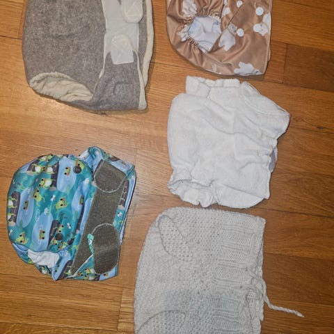 Selger Nøstebarn tøybleier i øko bomull som trenger sperrelag i ull. Disse var nye da jeg begynte å bruke de i februar-25.