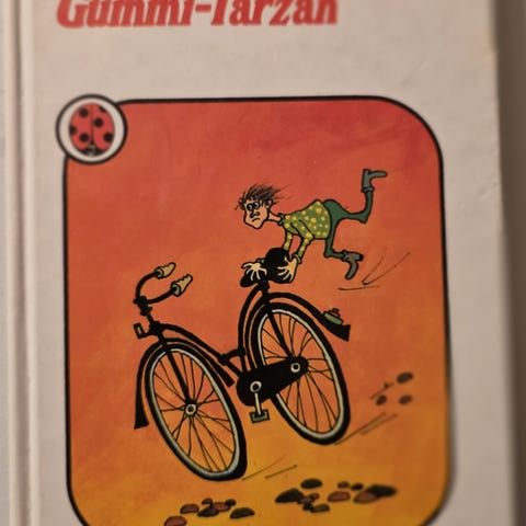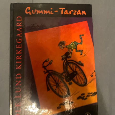 Ole Lund Kirkegaard Gummi-Tarzan bok. Innbundet utgave med illustrert omslag. Inneholder historien om Gummi-Tarzan, en barnebok skrevet på norsk. Passer for barn og unge lesere.