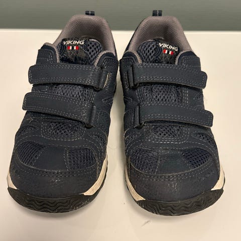 Viking barnesko i størrelse 36, unisex. Skoene er blå og laget for barn. De har solid såle med godt grep, egnet for utendørs bruk. Materialet og designet gir støtte og komfort for barnets føtter.