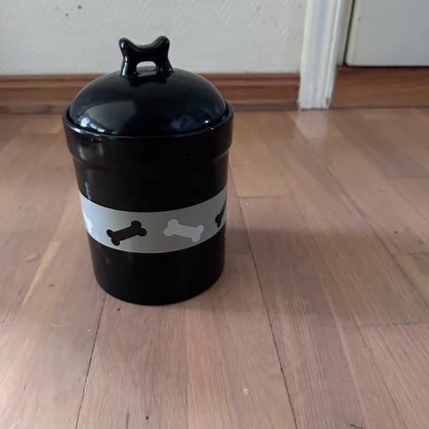 Bøtte til tørrfôr og krukke til go’biter
