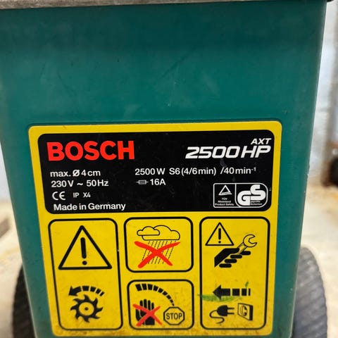 Håndterer opptil 40mm grentykkelse, børsteløs motor og har en 60l romslig oppsamler i plast som er lett å tømme.