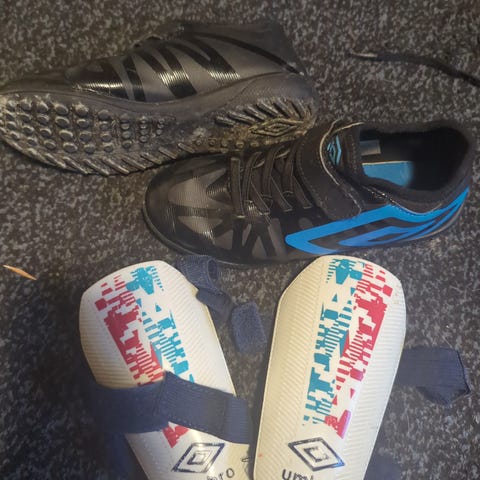 •Nr 10- UMBRO til leggbeskyttere (litt sprukket logo), str L. *KR 20.