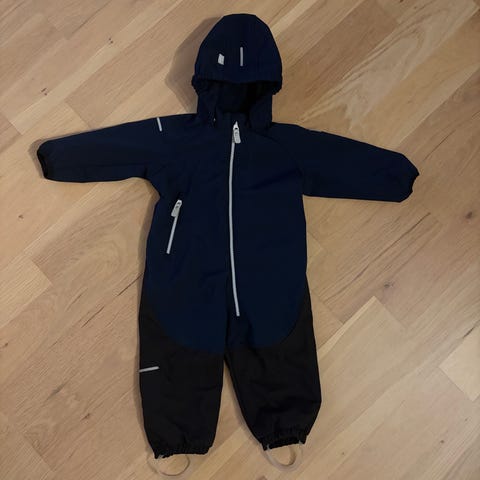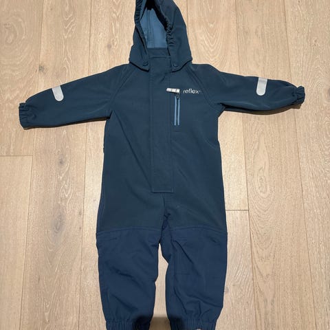 Reflex utedress i regnavstøtende materiale i str 86. Dressen er blå og designet for både gutter og jenter. Dressen har hette, glidelås foran, og elastiske mansjetter ved ermer og ben for bedre passform og beskyttelse mot vær. Materialet er tilpasset aktiv bruk for barn.