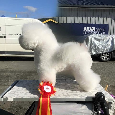 Mor er Bichon frise og far er Dvergpuddel. Patella og øyelyst sjekket.