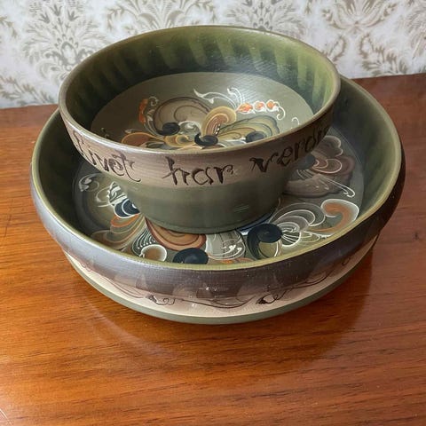 Rydder i dødsbo og egne skap og legger ut ting etter hvert som de dukker opp. Har ikke plass til alle skattene, så noen må videre til hjem som kan sette pris på dem.