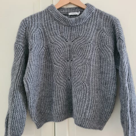 Lekker Noella ribbestrikket V-genser, str XS/S, stor i størrelsen, 40% akryl, 30% polyamide, 30% mohair. Genseren er meget lett, fin med en bluse under eller med et skjerf i halsen, selges kr 420.