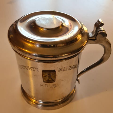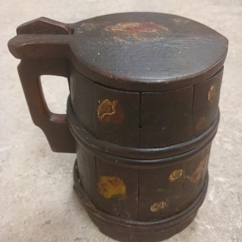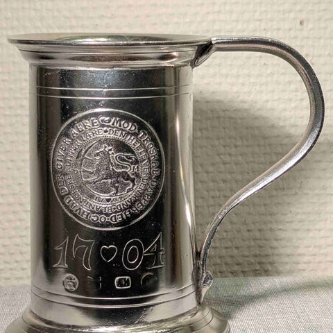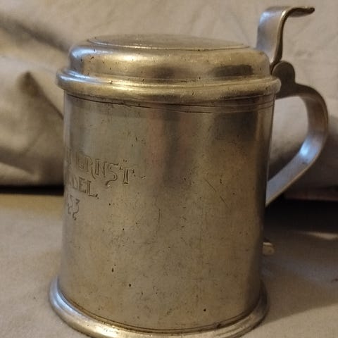 Selger et antikk rokokko tinn-krus fra sent 1700 til tidlig 1800 (ca. 1780 - 1820), trolig Tysk opprinnelse. Rokokko-dekoren og håndtaket er gravert for hånd, og detaljene er godt bevart. Kruset er i god stand for sin alder, men har noen små bulker og skader som er forventet med alderen, uten at dette påvirker funksjon (er hel og tett).