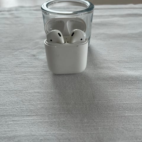 Gamle godt brukte AirPods, funker delvis. Den ene proppen går fortere tom for strøm enn den andre.