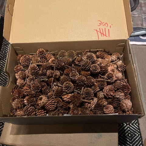 Det er plass til løse lerkekongler i esken også. De koster 1 kr stk. minimum 100 stk