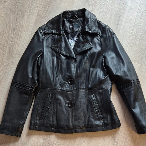 Ny skinnjakke av merket DM kjøpt i Estland.