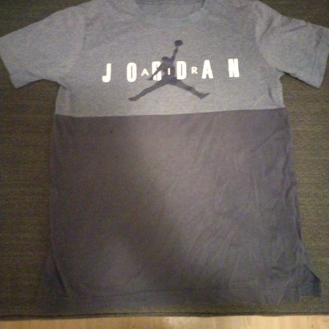 Nike The Nike Tee T-skjorte i størrelse M for menn. T-skjorten er hvit med tynne sorte striper og har en lite svart Nike-logo på brystet. Laget av bomullsmateriale, egnet for hverdagsbruk.