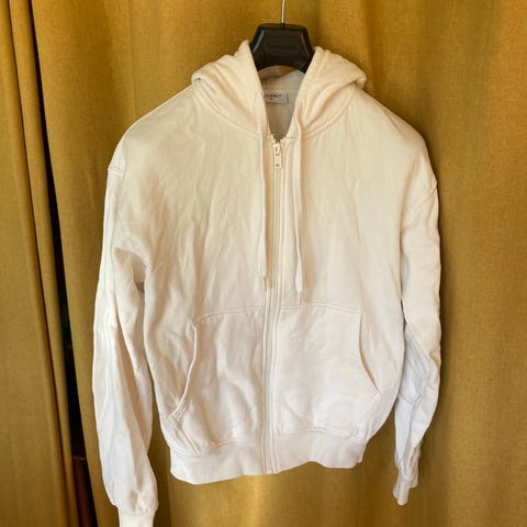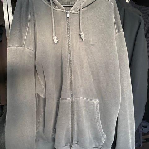 H&M Basic hettegenser i størrelse XL for menn. Genseren er grå og laget i et mykt materiale. Den har glidelås foran, hette med snøring og lommer på fronten. Passer til hverdagsbruk og gir god komfort.