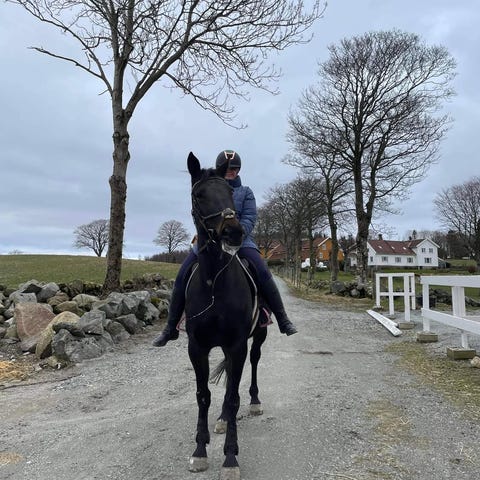 En ganske sprek hest, som trenger en erfaren rytter som tåler litt sprell. Snill på tur.