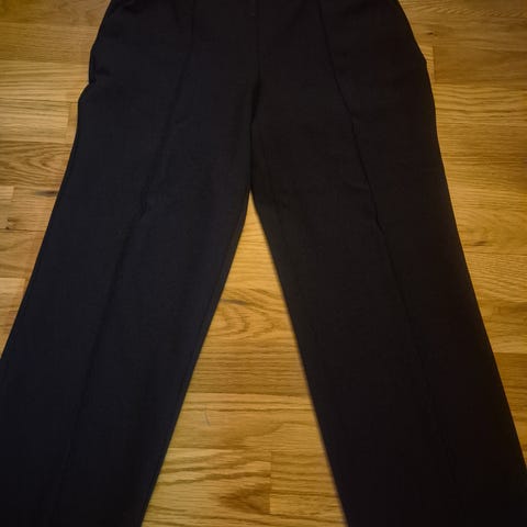 Fikk denne dressbuksen skreddersydd i Thailand september 2025- aldri brukt da det er litt for stor. Den er sydd etter mål til meg som er ca str 42 (vil si denne er en stor str 42) jeg er 176 høy. Den er sydd i ett kvalitetsstoff med stretch og i ett litt tyngre stoff som gjør at den legger seg pent ved føttene