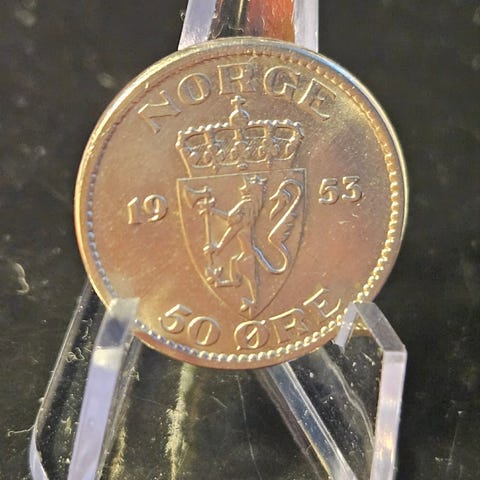 Gamle Norske mynter fra 1950 tallet. 1 krone 1956, 25 ører: 1956-57-57, 10 ører: 1952-53-54-56-57-57-57, 5 øre: 1953, 2 ører: 1950-50-51-51-52-53-53-57-59-59-59 og 1 ører: 1952-53-53-55-55-56-56-56-57-57-57-57-57-57-57-58-59. Ønsker å motta bud. Kan sendes om kjøper betaler frakt.