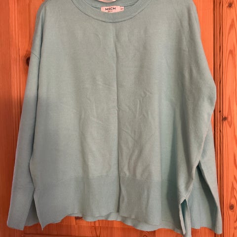 KappAhl genser for kvinner i størrelse M, grønn farge. Genseren har en rund hals og en dekorativ vridning foran. Materialet er mykt og egnet for daglig bruk.