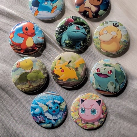 Pokemon Speil med blå ramme i plast fra 90 tallet