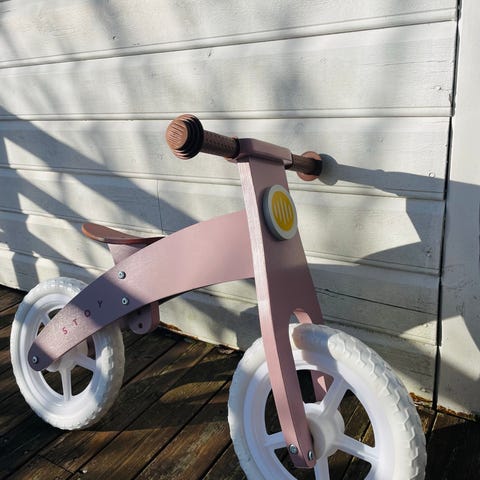 Godt brukt løpesykkel. Bruksmerker og rust, men mye bruk igjen.