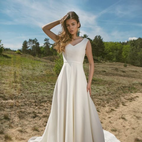 Lang festkjole/ballkjole i blå silke.Størrelse liten L /40. Halterneck.Med blått silkesjal.