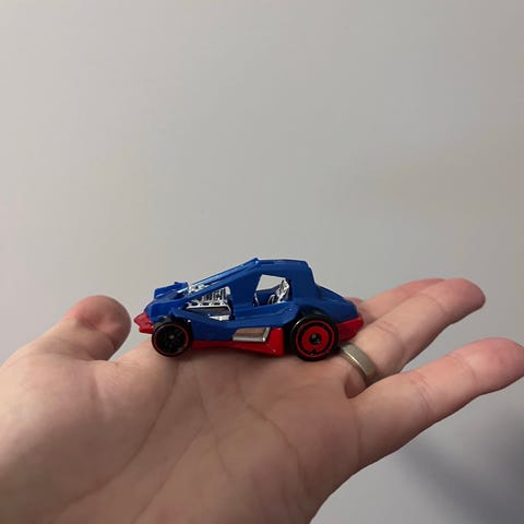 Hot Wheels radiostyrt bil i rød farge med USB-ladekabel inkludert. Produktet består av en liten fjernstyrt bil og en fjernkontroll. Passer for barn og samlere som ønsker en kompakt og bærbar radiostyrt bil.