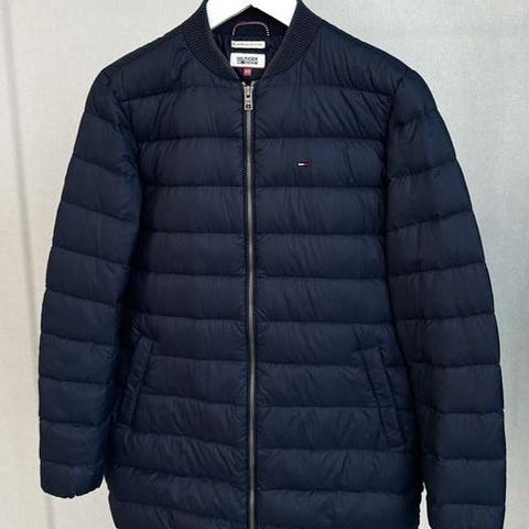 Tommy Hilfiger Annet yttertøy dunjakke i størrelse M for kvinner. Jakken er blå, vannavstøtende med THProtect-teknologi, og fylt med dun for isolasjon. Den har glidelås og avtagbar hette med knapper. Jakken er designet for utendørs bruk og gir beskyttelse mot kulde og fuktighet. Den har en flekk, se bilde. Kan sikkert vaskes bort. Ellers som ny. Lengde fra skulder til kant 98 cm