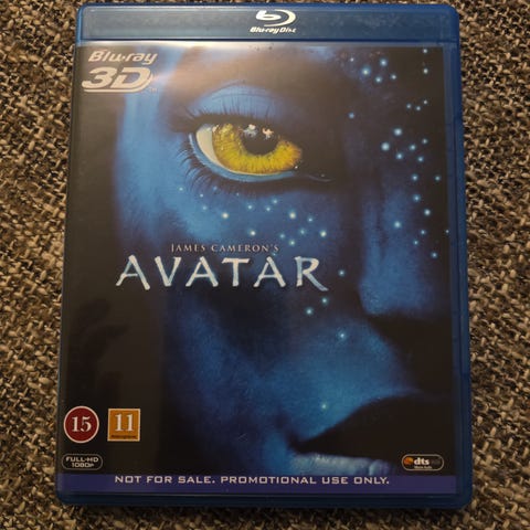 James Cameron Avatar Blu-ray 3D film. Inneholder filmen Avatar i 3D-format, utgitt på Blu-ray. Disken er en promoteringseksemplar og ikke til salgs. Passer for aldersgrense 15 år.