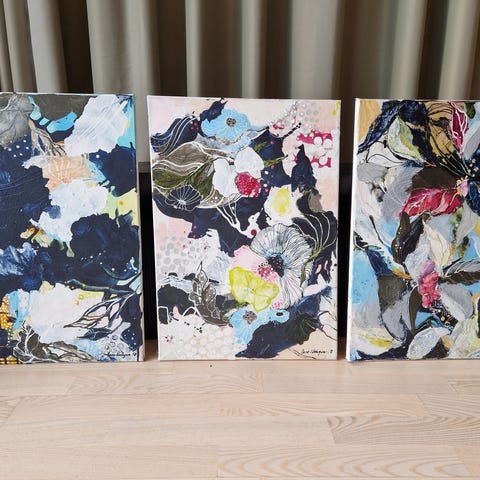 To stk originale malerier i ramme med signatur av Tuuli Kotka.